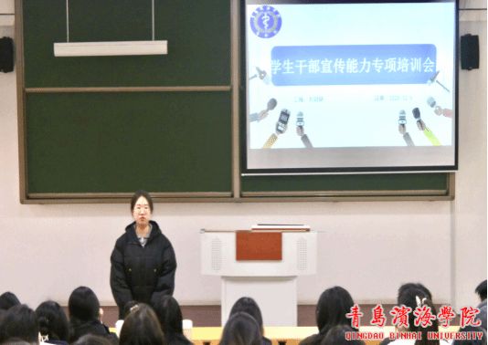 为加强学生干部队伍建设,提升宣传工作水平,进一步巩固校园宣传阵地,医学院于2025年12月5日下午16:50,在青岛滨海学院大珠山校区A402教室,组织学生干部参加宣传能力专项培训。本次活动由辅导员刘玥妍主讲。
