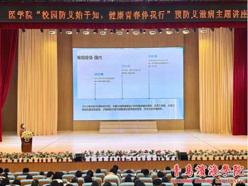 亓丰华医生则聚焦于猴痘防控知识。他详细介绍了猴痘的全球及国内疫情流行趋势,分析了青壮年等高发人群的特征,以及发热、皮疹、淋巴结肿大等典型临床症状。亓医生向同学们分享了避免与感染者密切接触、保持良好的个人卫生习惯等实用防护技巧。同时,他还结合秋冬季节传染病流行特点,补充普及了流感预防知识,并对宫颈癌(HPV)疫苗接种相关政策进行了解读,助力师生共同筑牢校园健康防线。