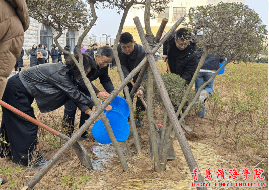 2026年3月12日,在第48个中国植树节到来之际,下午4时20分,青岛滨海学院大珠山校区在图书馆前隆重举行2026年度植树节启动仪式。本次活动以“播撒绿色希望,共建生态校园”为主题,通过实际行动引导师生增强环保意识,共建美丽家园。医学院积极响应号召,组织师生代表全程参与此次活动,以实际行动践行绿色发展理念。