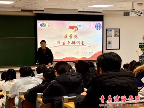 为切实筑牢假期安全防线,规范假期前学院管理工作,确保全体学生平安离校、舒心过节,2026年1月12日晚上19∶40,医学院于A426教室召开学生干部培训会议。本次会议由曹干事主讲,医学院在校全体学生干部参会。