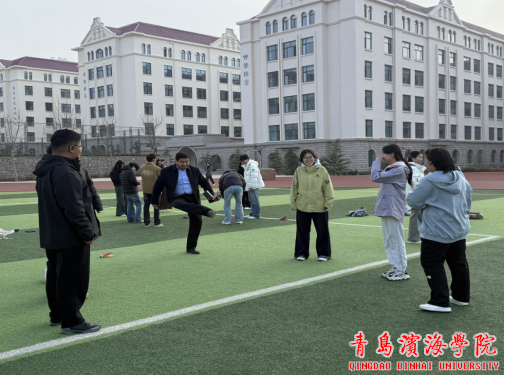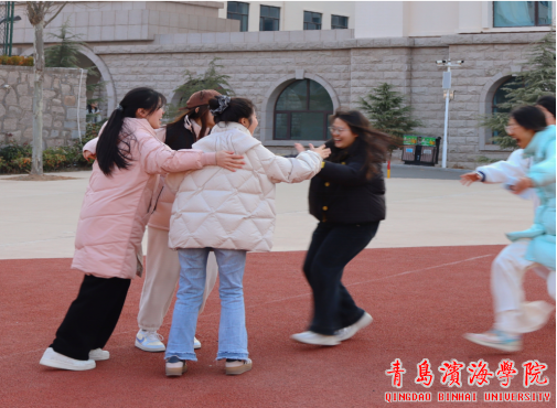 跳绳比赛中,同学们身姿矫健,配合默契,展现出良好的体能和节奏感;踢毽子区域,五彩毽子上下翻飞,大家或单踢或围传,动作灵活自如。“桃花朵朵开”游戏环节,师生根据口令迅速抱团,考验反应速度的同时也拉近了彼此距离。两人三足赛道上师生搭档肩并肩、步调一致,齐心协力冲向终点。老鹰捉小鸡和丢手绢则让现场充满童趣与欢乐,师生在奔跑与追逐中增进情谊,重拾轻松时光。